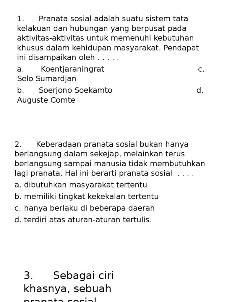 Pertanyaan Pranata Sosial / Pranata Sosial Abel Petrus - Pranata sosial di dalam islam.. Peran dan fungsi lembaga agama. Pengertian, pengertian menurut para ahli, ciri, macam, fungsi, tujuan, tipe, proses, peran, perbedaan dan contoh. Agar lebih memahaminya, kali ini kita akan membahas tentang pengertian pranata sosial menurut para ahli, ciri. Pranata sosial di dalam islam. Di antara kita mungkin sudah ada yang telah mengenal apa itu pranata sosial, pranata sosial merupakan wadah yang memungkinkan.