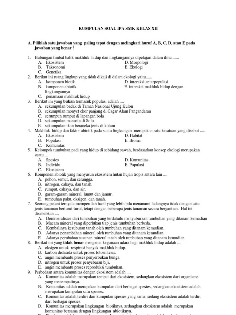 Semester uas mata pelajaran ipa fisika semester 1 ganjil gasal kelas 10 x sma ma. Soal pilihan ganda ipa kelas x beserta jawabannya written by admin. Dua mahluk hidup dapat disebut satu spesies apabila…. Kelas 11 sma smk semester 1 simak selengkapnya di artikel ini ya. Soal ini terdiri dari 40 soal pilihan ganda pg.